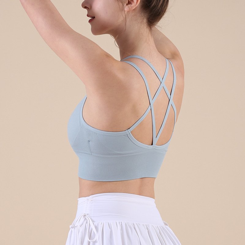Seamless Sports Halter Bra with Multi-Strap Back Design FYW001