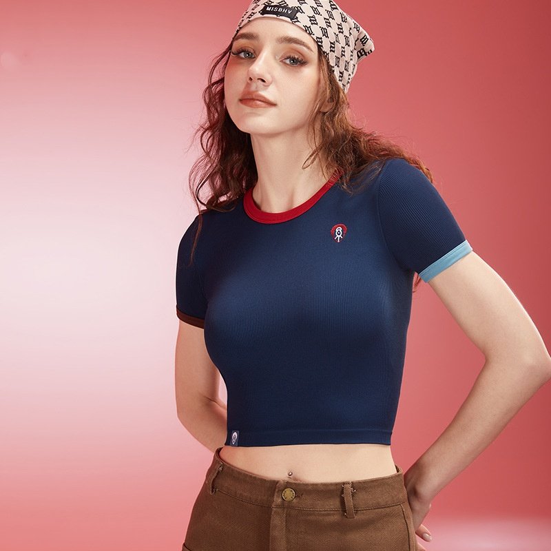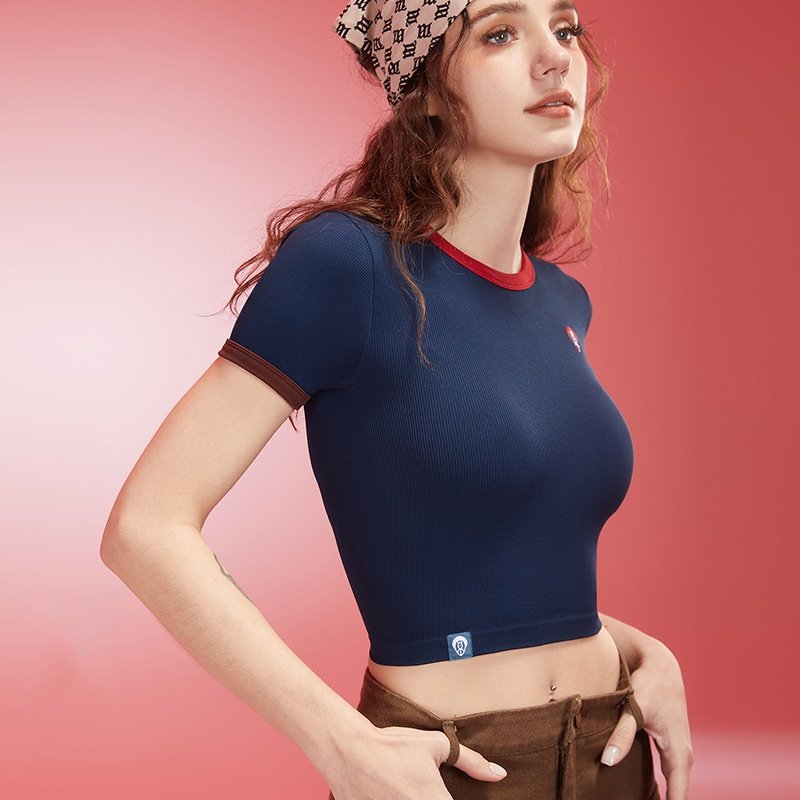 Women’s Navy Blue Ribbed Crop Top BCD001